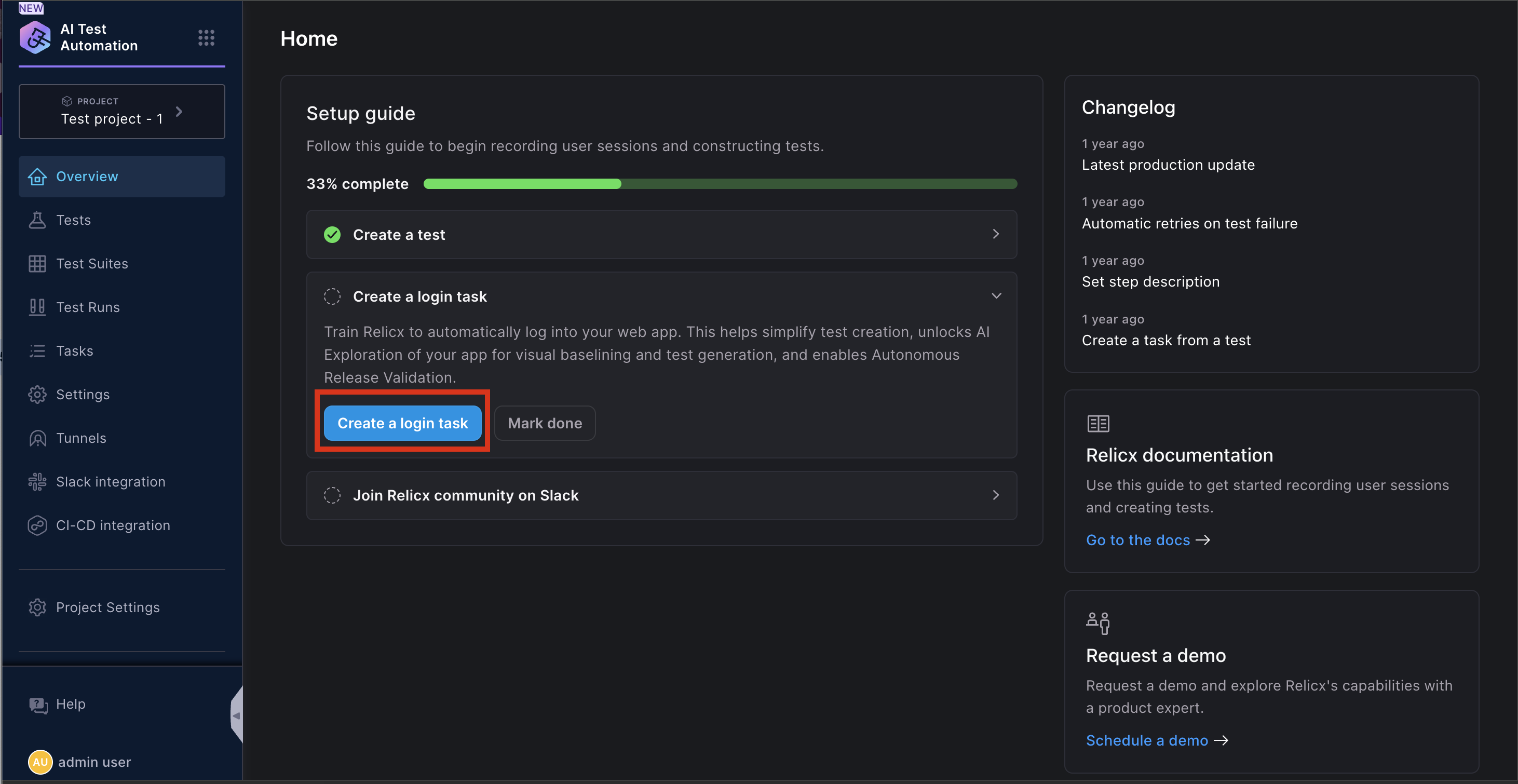 Once the login task is created, you will be able to automatically add it to your tests