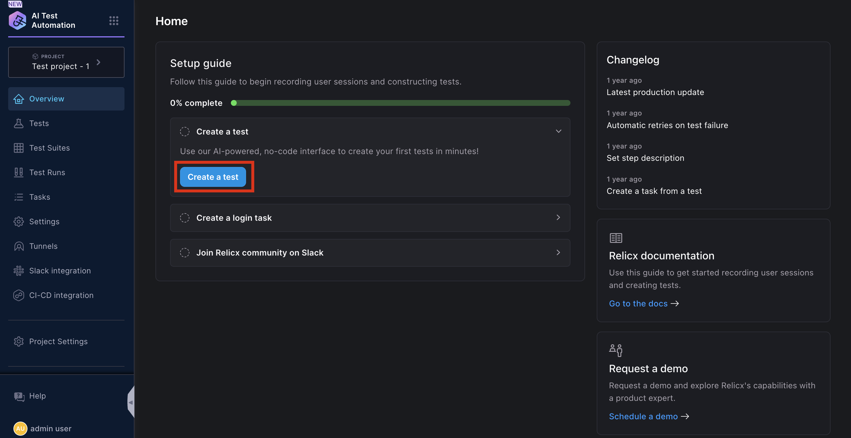 After you have signed up, the first step would be to create an AI powered test.