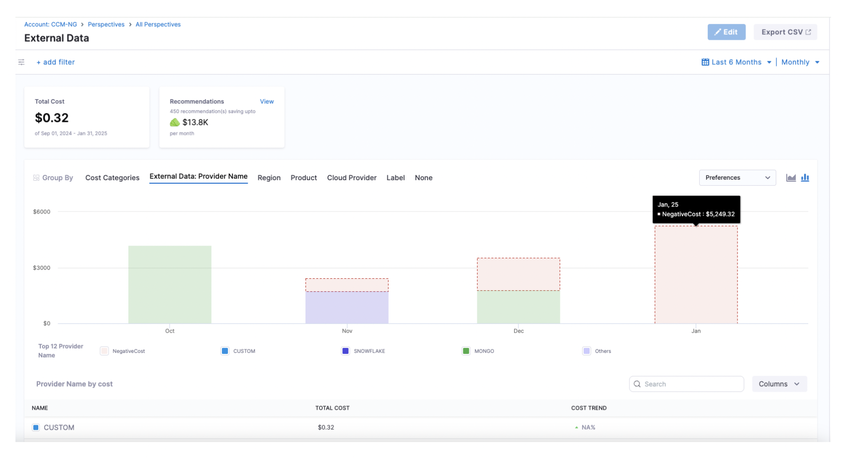 External Cost Data Ingestion in Harness CCM solves this by allowing users to upload cost data in a standardized CSV format (FOCUS). Once ingested, Harness treats this data just like native cloud costs enabling you to:
