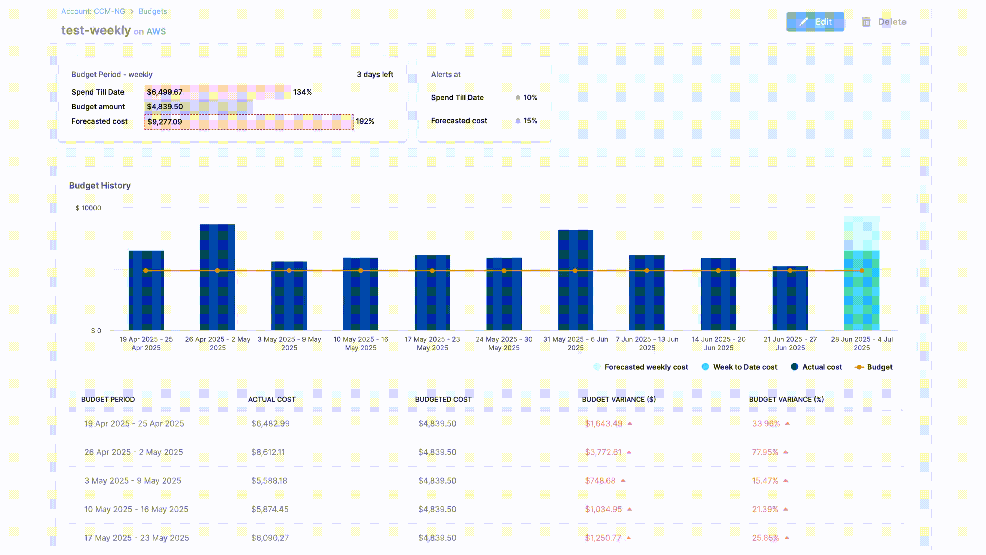- Actual Cost: Real-time comparison of spending against your budget limit