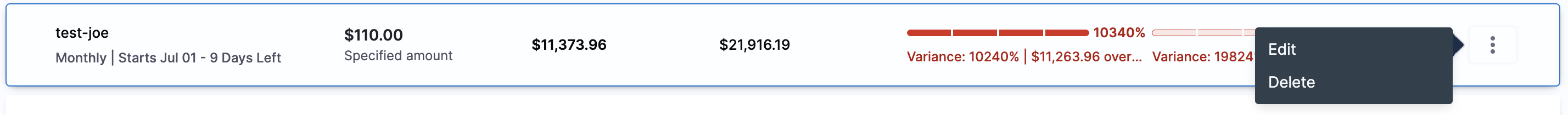 - To delete a budget, In All Budgets, select the budget that you want to delete and click on Delete.
