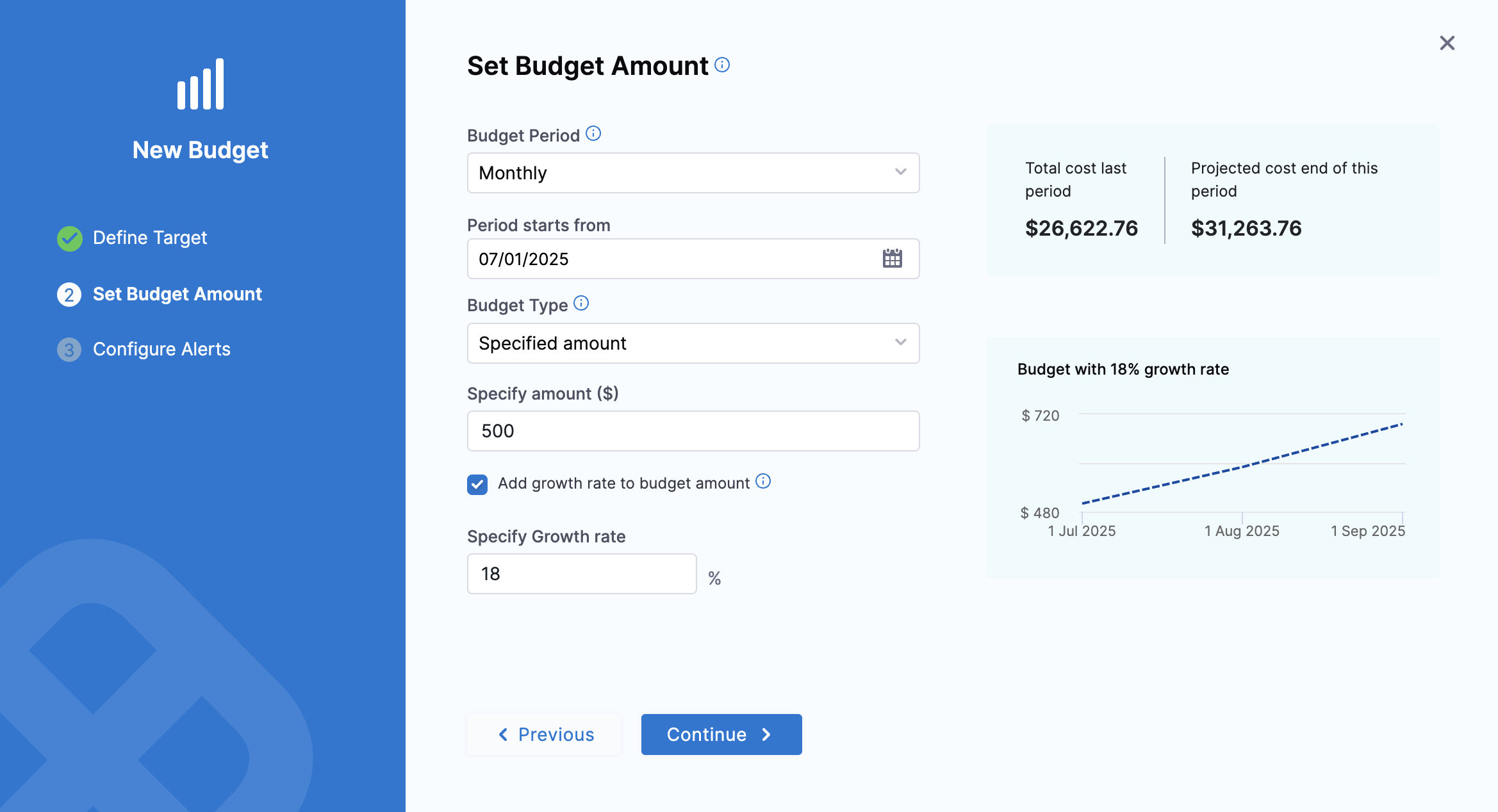 - Set Custom Budget Limits: Define spending thresholds for specific cloud resources, services, or entire projects based on your organizational needs