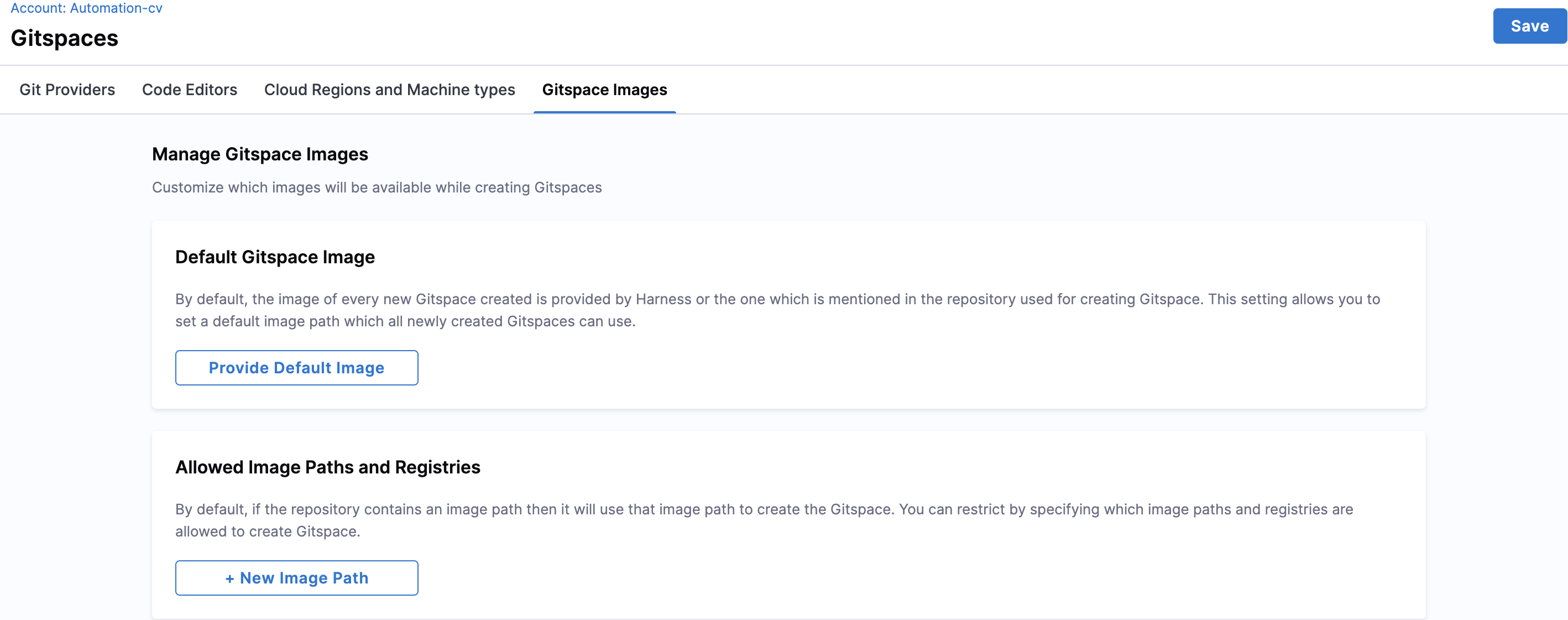 This setting restricts Gitspaces to only specific image paths. You can add multiple allowed paths with pattern matching.