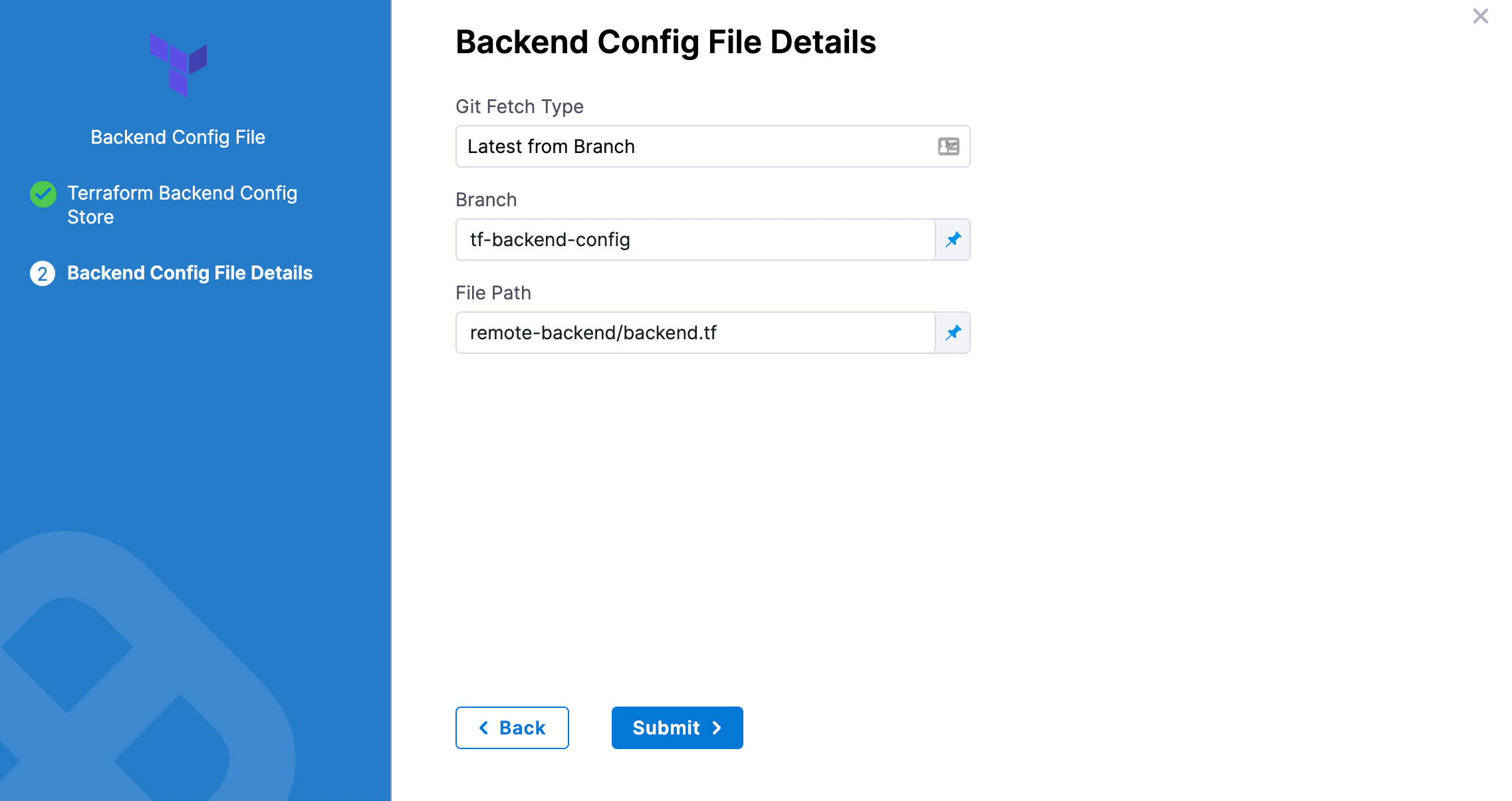 In Backend Configuration, you provide the required configuration variables for the backend type.