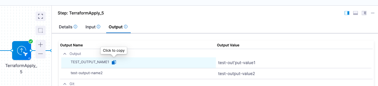 - In a pipeline execution that uses this feature, select the Terraform Apply step.