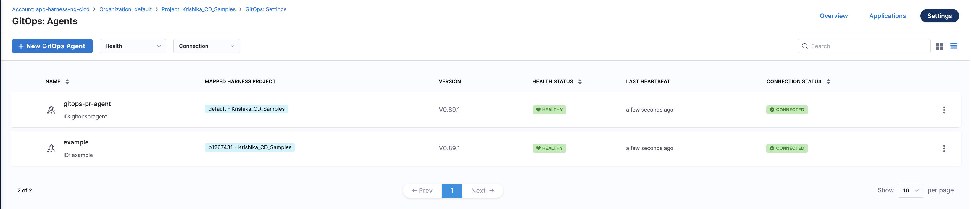 For the example in this topic, a regular Harness GitOps agent is created without an existing Argo CD instance (non-BYOA setup). For creating a BYOA setup (with an existing Argo CD installation), please refer to Bring Your Own Argo CD into Harness GitOps