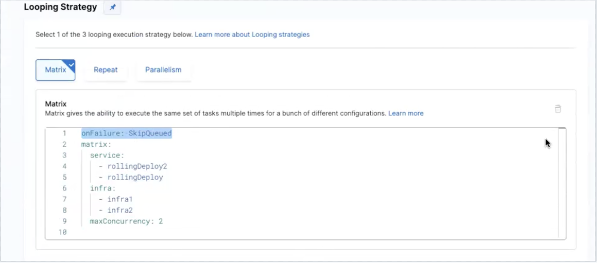Applying Failure strategy for multi service with Matrix looping
