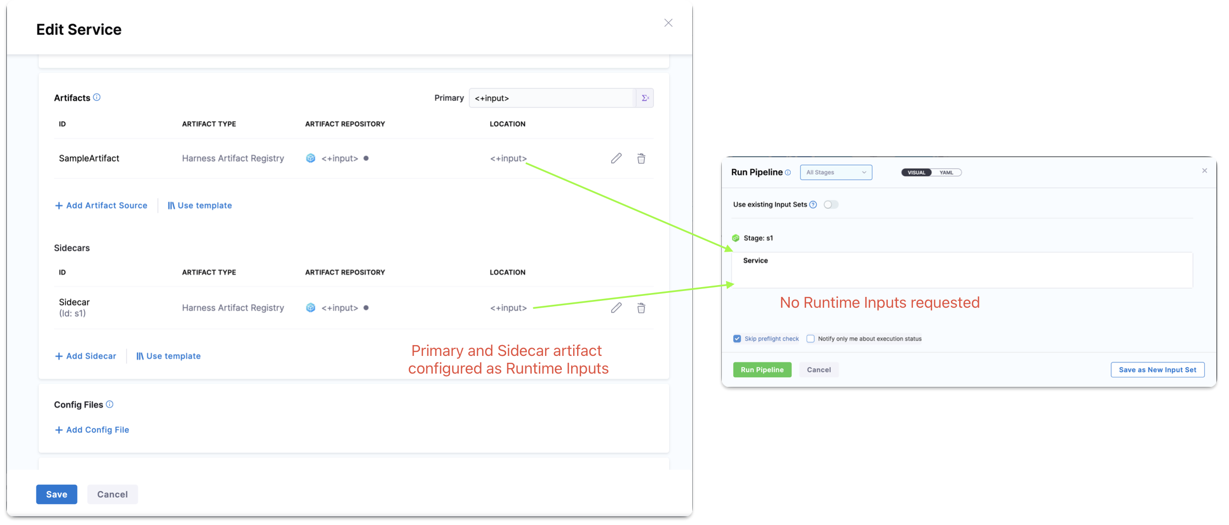 - Example: If a service with artifact-X(image-tag-v1) is used in pipeline-1 and pipeline-2: