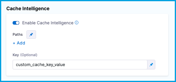 When using custom paths, you must also provide a cache key. If a cache path is specified without a key, Cache Intelligence will be disabled, skipping cache operations.