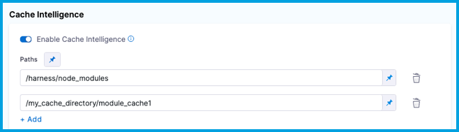 When Cache Intelligence is enabled, the cache plugin automatically detects build tools and determines cache paths, unless custom paths are specified. Cache paths are stored under <account_id>/default/path/to/directory.