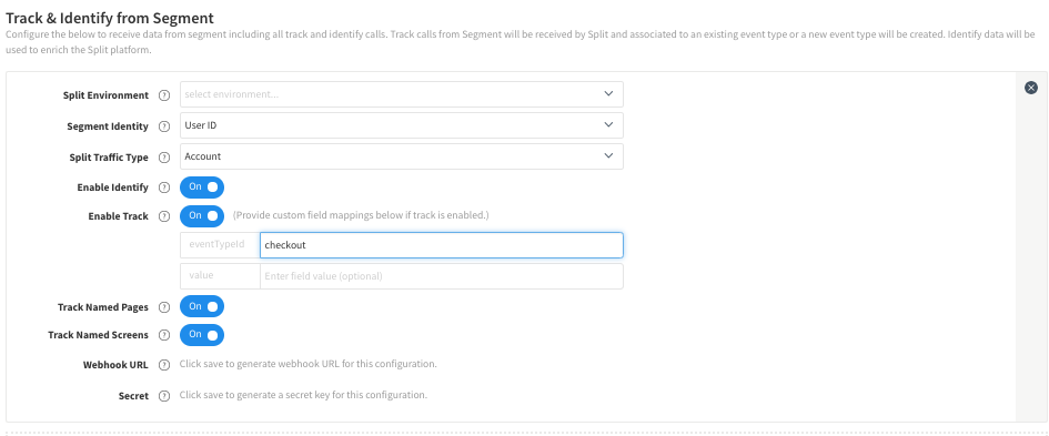 - Enable identify: When enabled, identities captured in Segment are mapped to the traffic types you selected above and displayed in Harness FME.