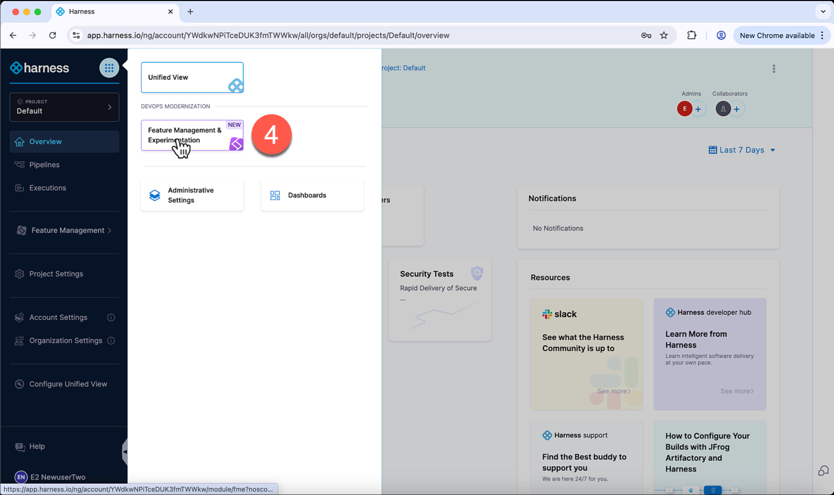 The first time you log into Feature Management & Experimentation (FME) on Harness you will see a screen like the one below.