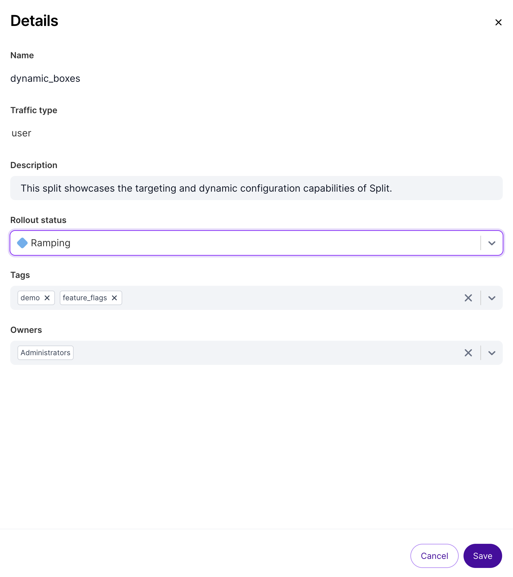 You can assign a status to each feature flag when creating or updating targeting rules. Statuses provide a way for teams to indicate which stage of a release or rollout a feature is in at any given moment, and as a way for teammates to filter their feature flags to see only the ones that are in a particular stage of the internal release process.