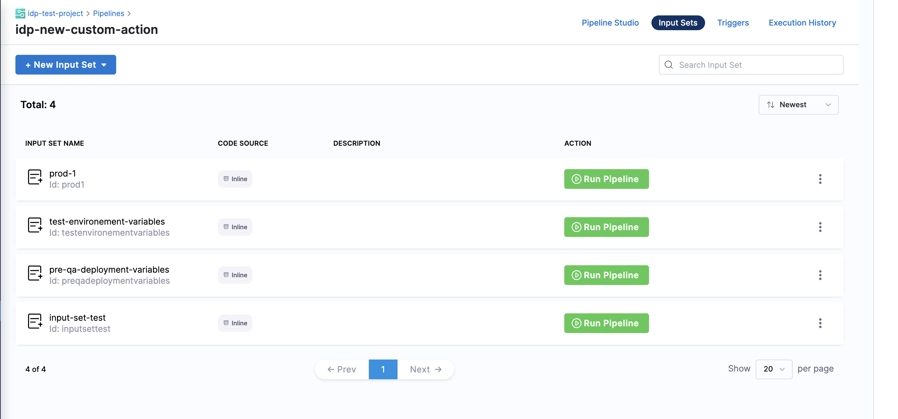 | inputset (Mandatory) | Pipeline Inputset | Required input set for the pipeline to execute | object |