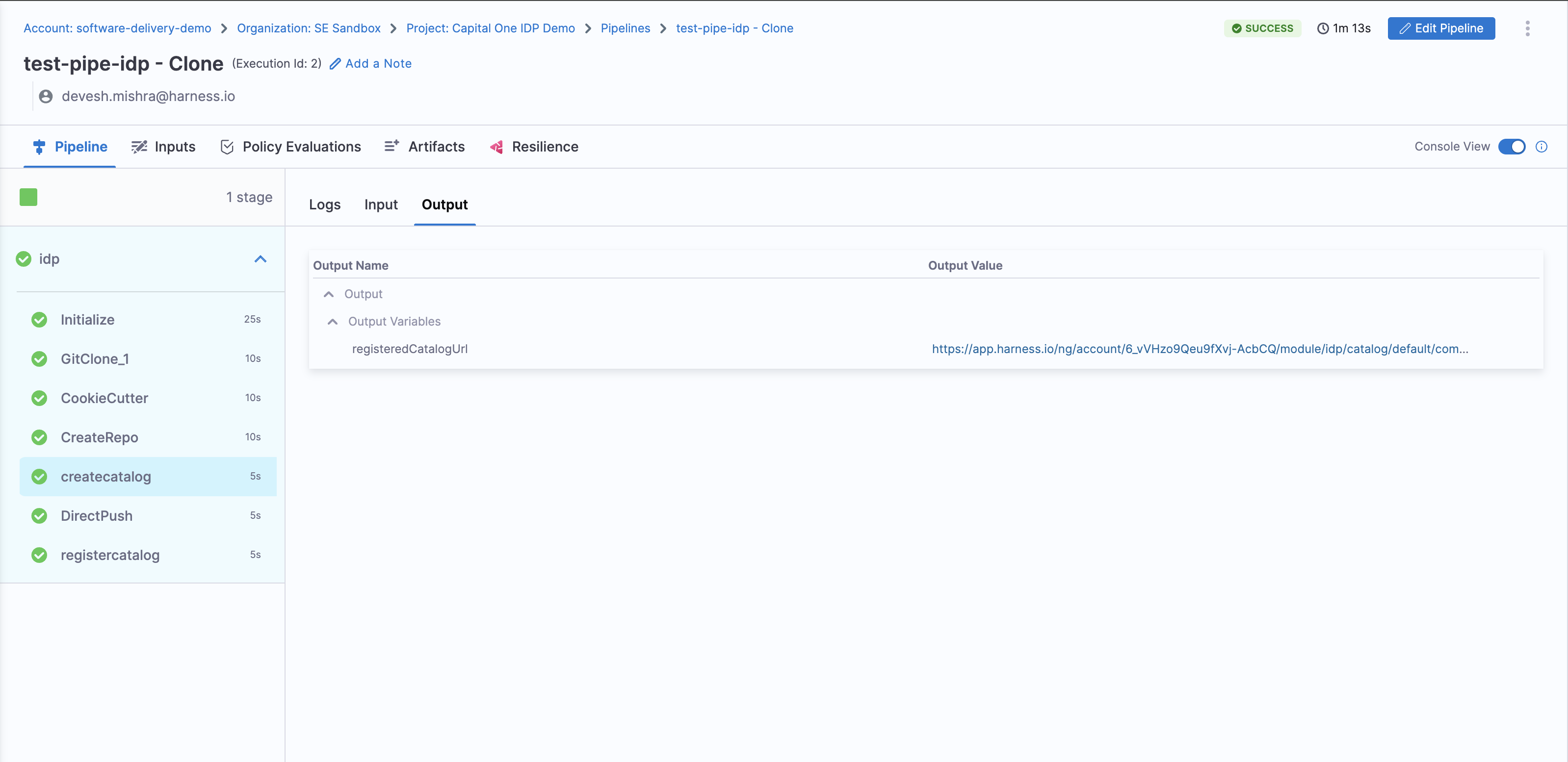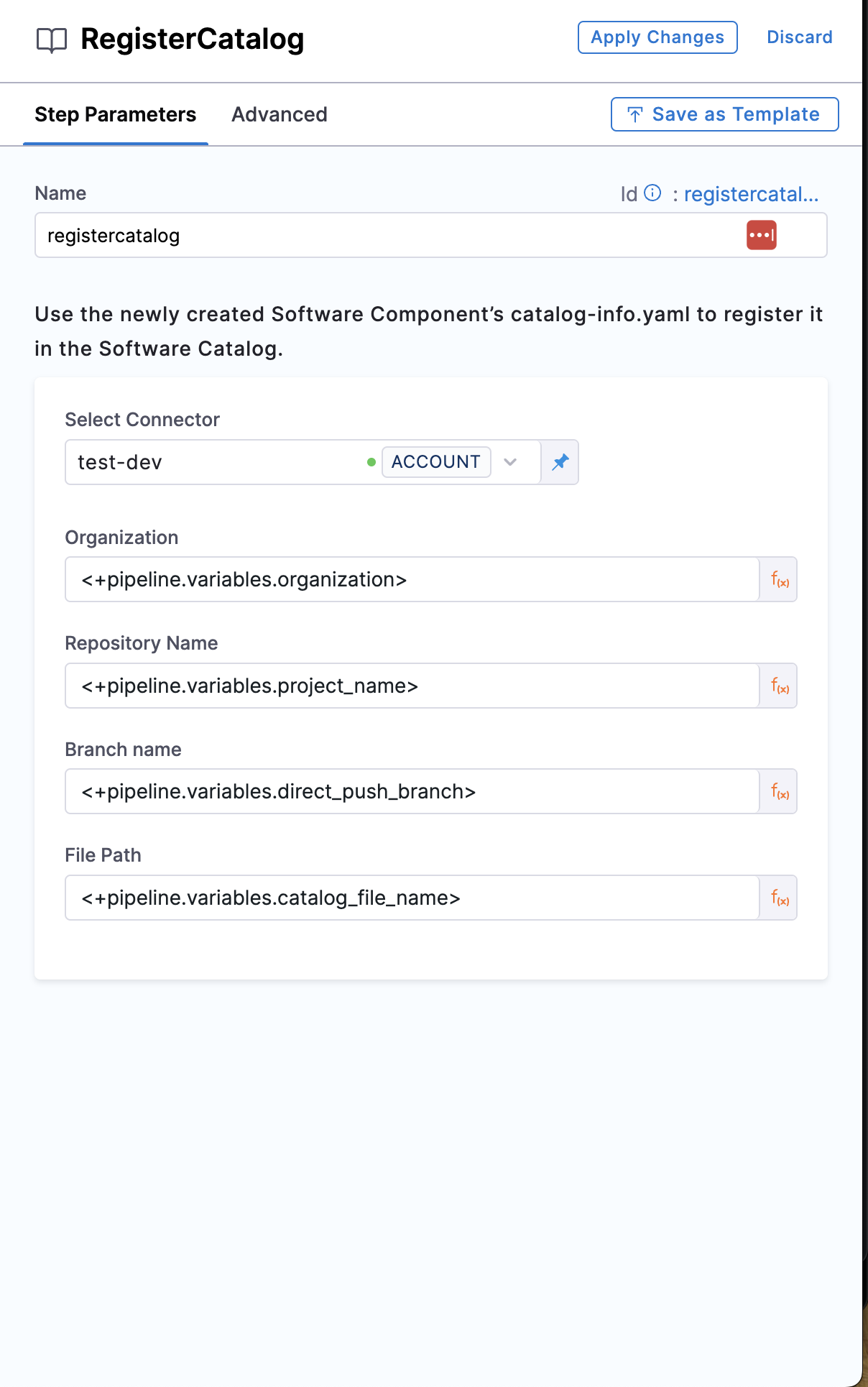 4. registerCatalog: Used to register the software component created in the Harness IDP Catalog.