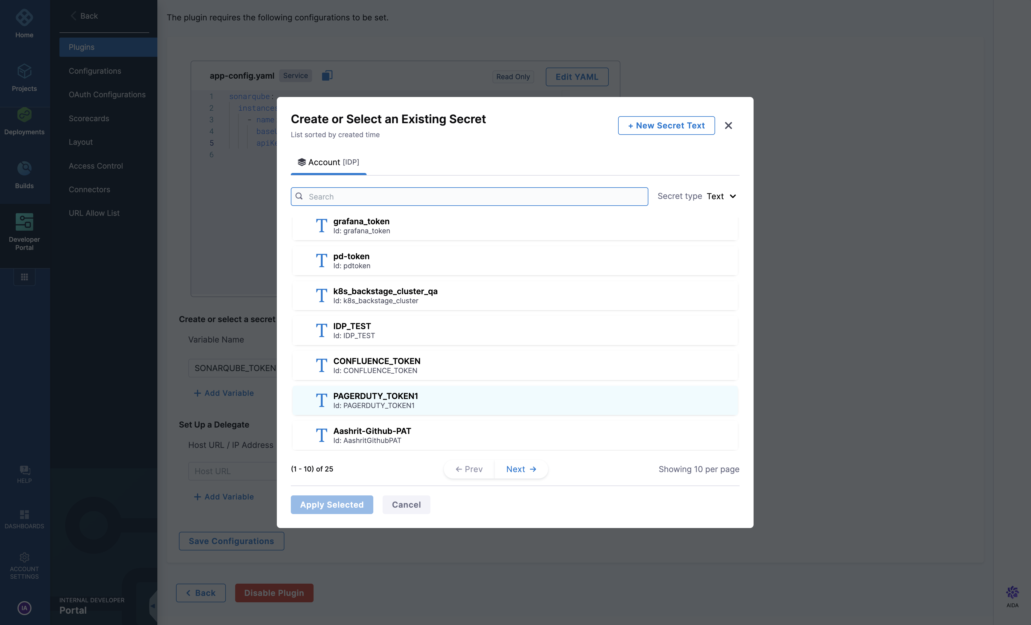 • Create secret in Harness to store API token, click on “New Secret Text” and enter values as shown below.