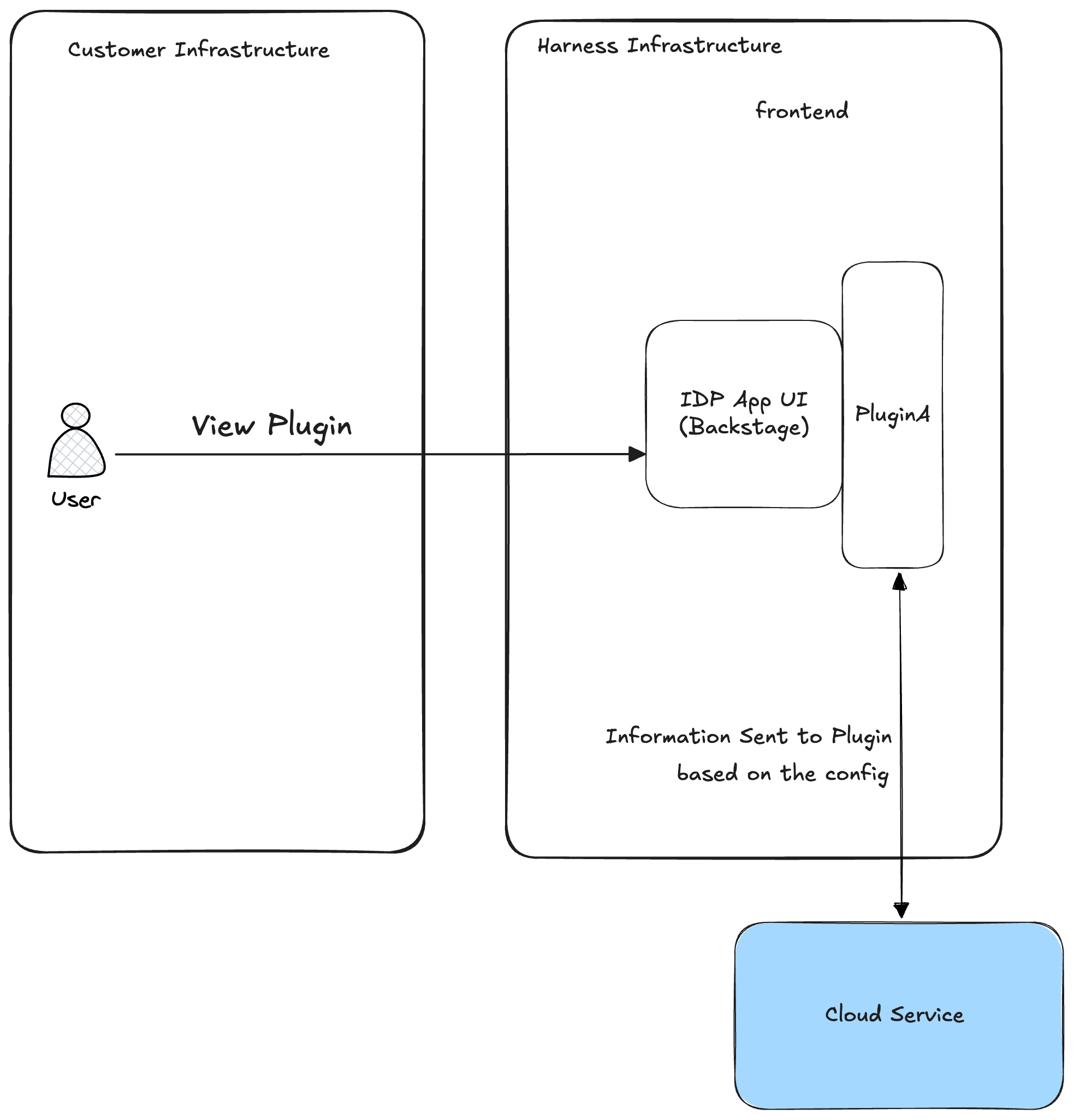 In this case, the plugin connects to an internal system using both Backend Proxy and a Delegate Proxy. The request to delegate proxy goes through an interceptor which checks for the host as it is required by the delegate proxy.