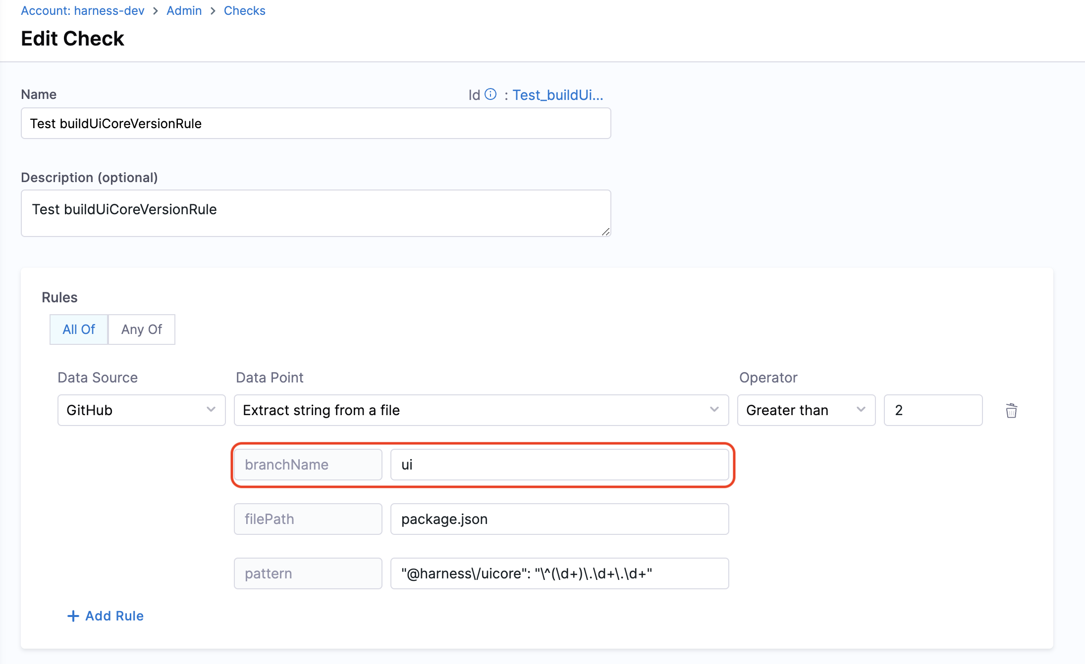Users can now use all the entity definition from the catalog-info.yaml or from additional properties ingested using APIs as input variable(JEXL format) in Scorecard Checks. For example, <+metadata.testCoverageScore>, <+metadata.annotations['backstage.io/techdocs-ref']>. Checks e.g., <+metadata.harnessData.name> will fetch the value for the branch in the following YAML as catalog-info.yaml.