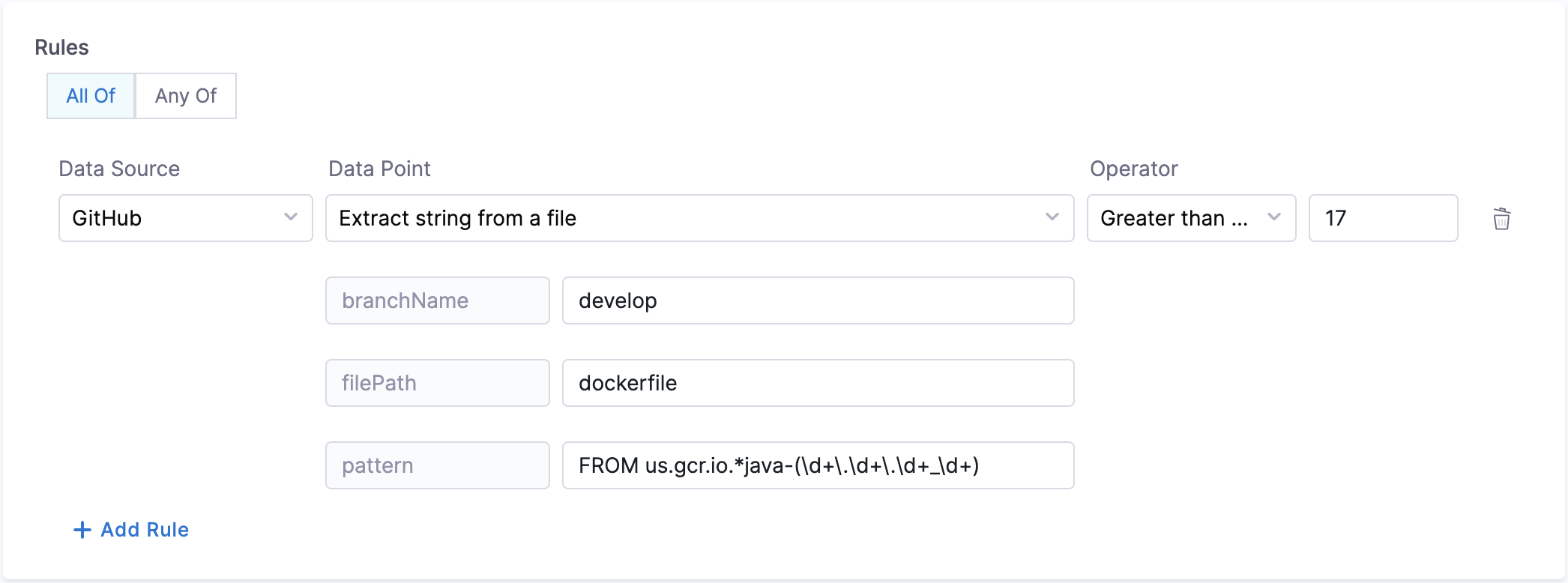 backstage.io/source-locationannotation to determine the branch name and repository details. It is essential to specify the filename with its extension or provide the relative path from the root folder (e.g., README.md or docs/README.md) in the conditional input field. After fetching the file, the contents are examined to find the pattern. Returns true/false based on whether the pattern was found or not.
