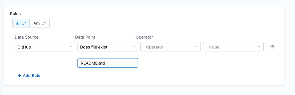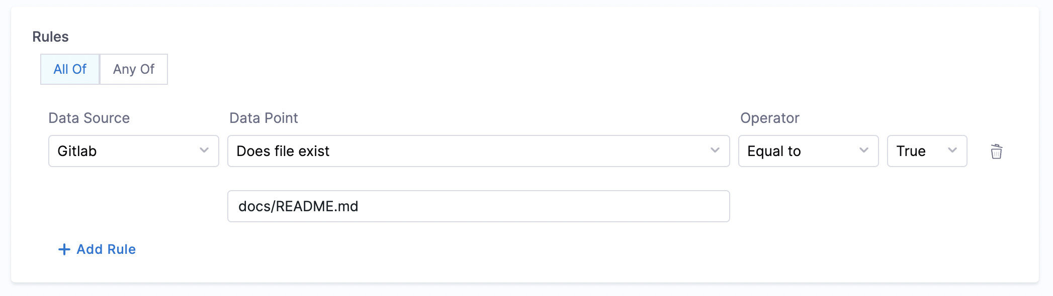 backstage.io/source-locationannotation to locate the repository and check for the file’s presence. Make sure to mention the filename with extension or relative path from the root folder (e.g.: README.md or docs/README.md) in the conditional input field. - Prerequisites: Provide suitable