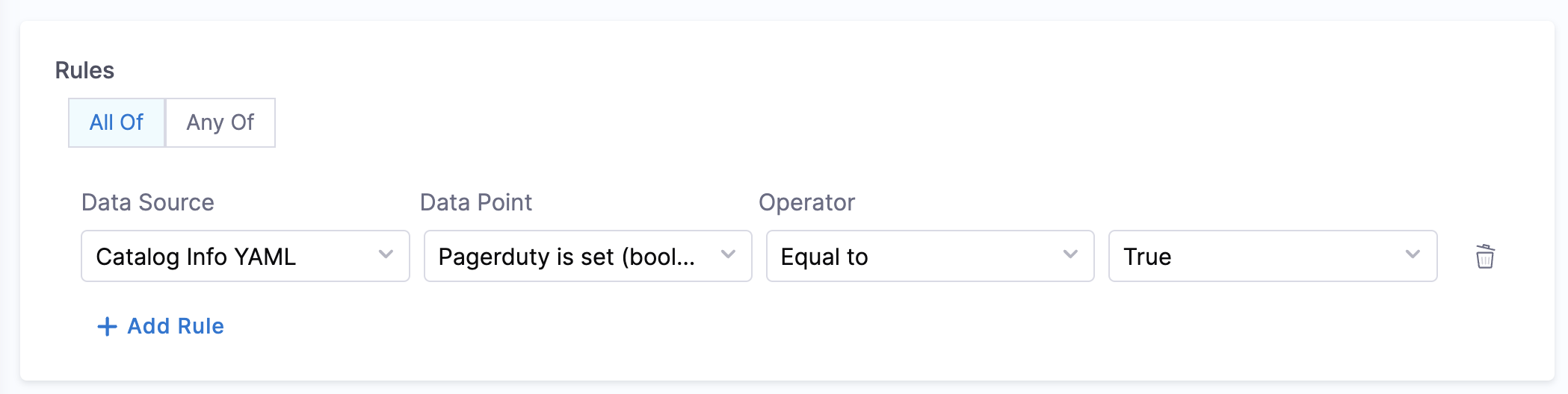 pagerduty.com/service-idconfigured or not. - Calculation Method: The catalog YAML is inspected to check if the