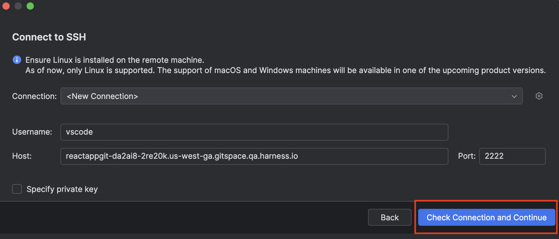 With Rider IDE support, Harness CDE enables seamless and efficient remote development in your Gitspaces with your IDE. This integration leverages JetBrains Gateway to establish a direct remote connection with Rider, eliminating the need for any prior setup.