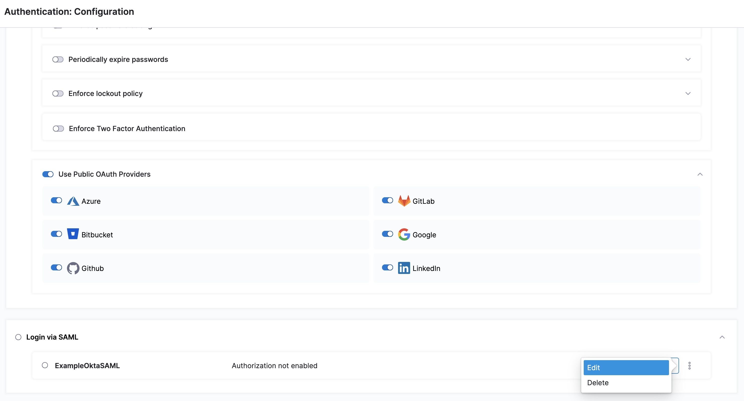 - Select SAML Provider to add a SAML configuration.
