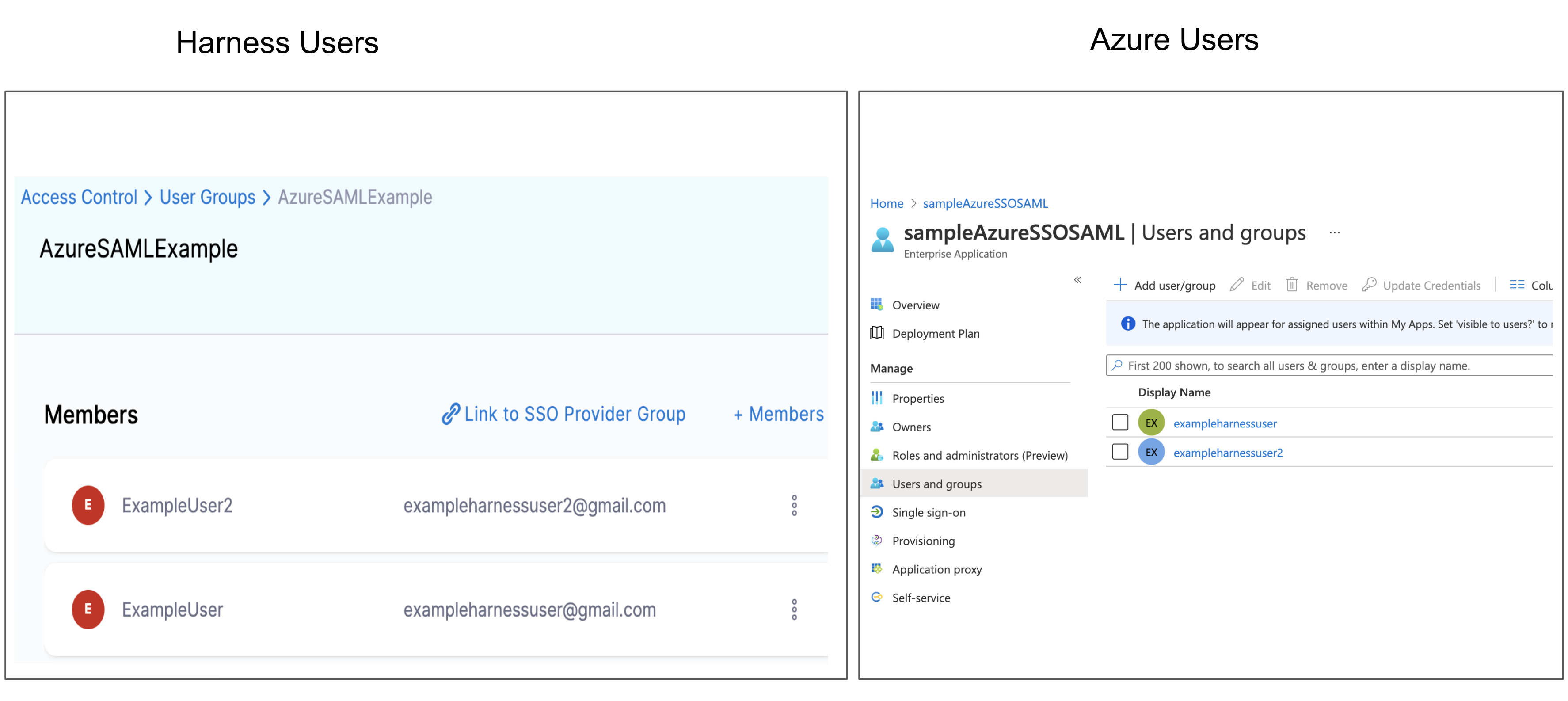- SAML provider user email addresses: To use the SAML provider to verify Harness Users, the email addresses used in the SAML provider must match the email addresses for the registered Harness Users you want to verify.