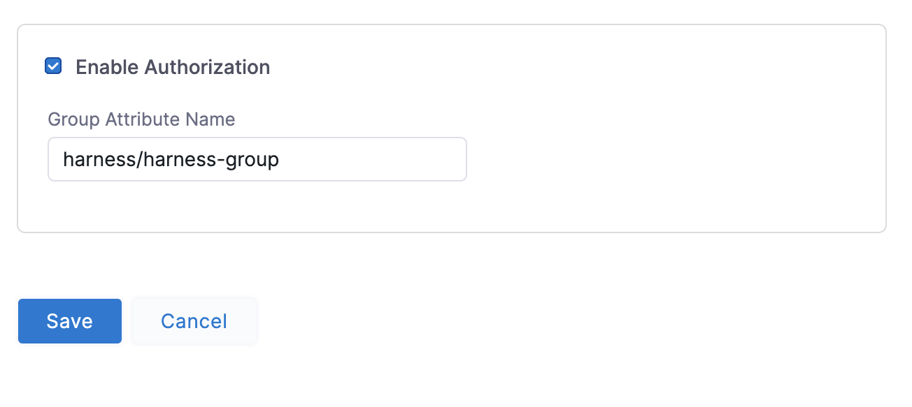 Field Description Name Keycloak Select an SAML Provider Other Enable Authorization Enable if you want to automatically sync group memberships in Harness based on group memberships in Keycloak Group Attribute Name member (only available if Enable Authorization is selected) Add Entity Id Enabled Entity Id app.harness.io Enable JIT Provisioning Enable if Just In Time user provisioning is desired -