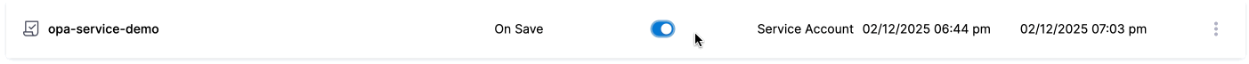 - Warn & continue - You will receive a warning if the policy is not met when the Service Account is evaluated, but the Service Account will be saved and you may proceed.