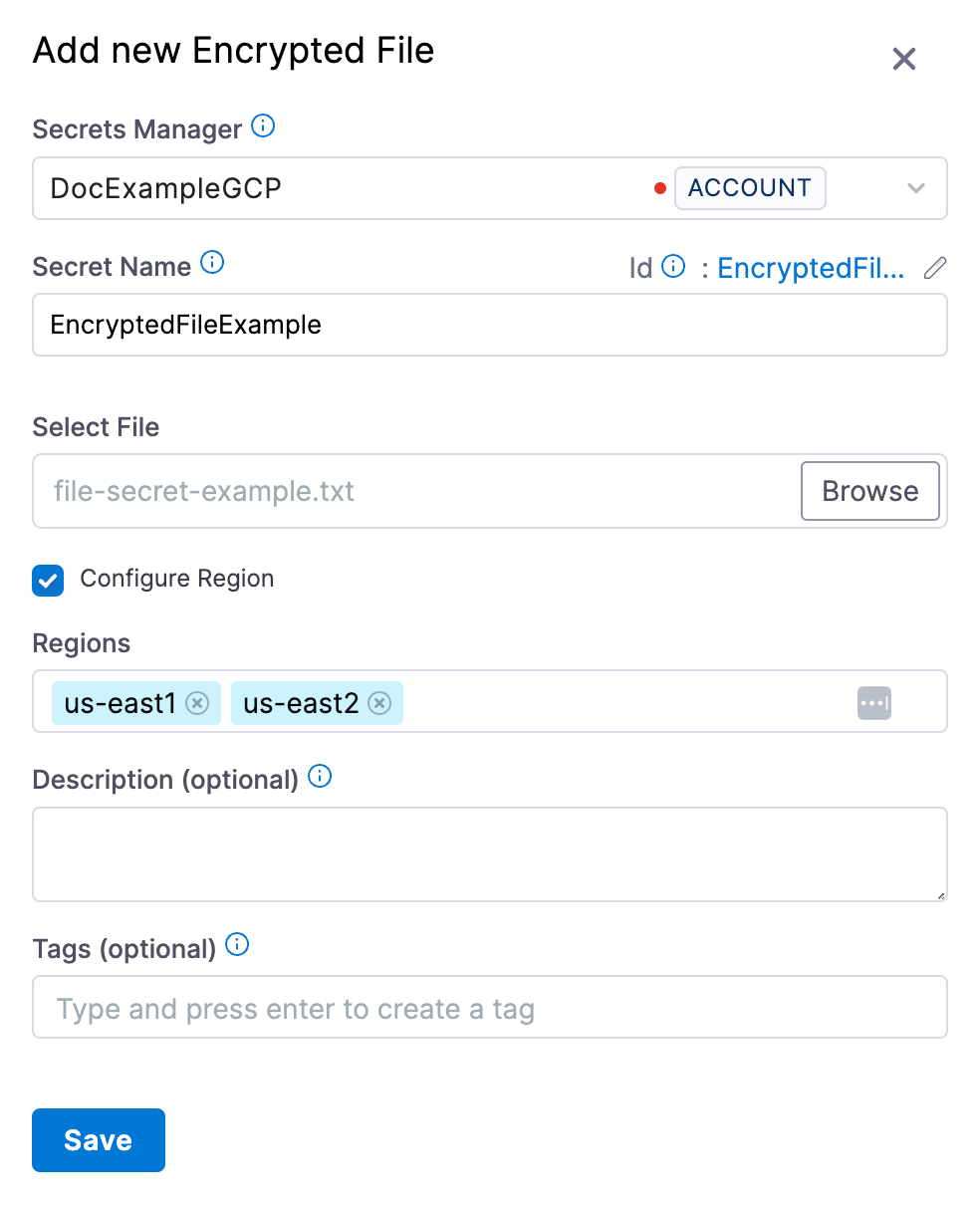 In Google Secrets Manager Credentials File, select the encrypted file you just added in Harness.