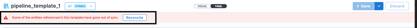 Harness APIs detect pipeline template changes that require reconciliation. Harness warns you in the UI when a pipeline references a template with updated entities you must reconcile.
