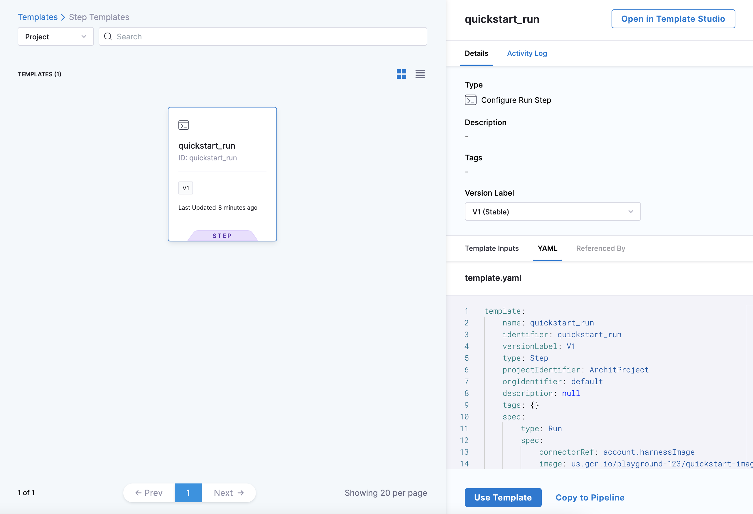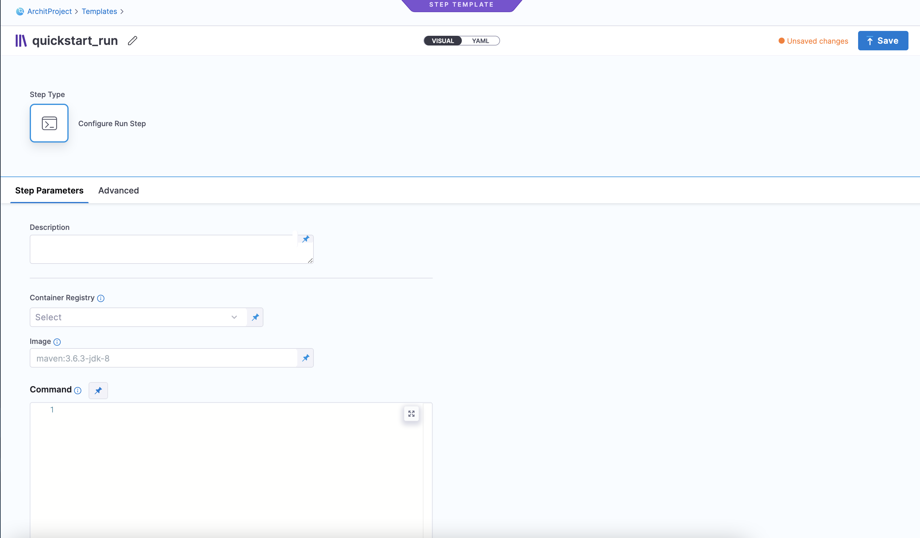 To demonstrate how to create, configure, and use step templates, this topic adds a CD Run step template to a CD pipeline. You can also create templates for CI Run steps or any other step type in Harness.