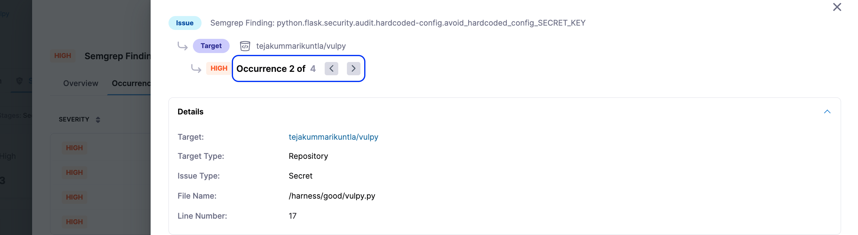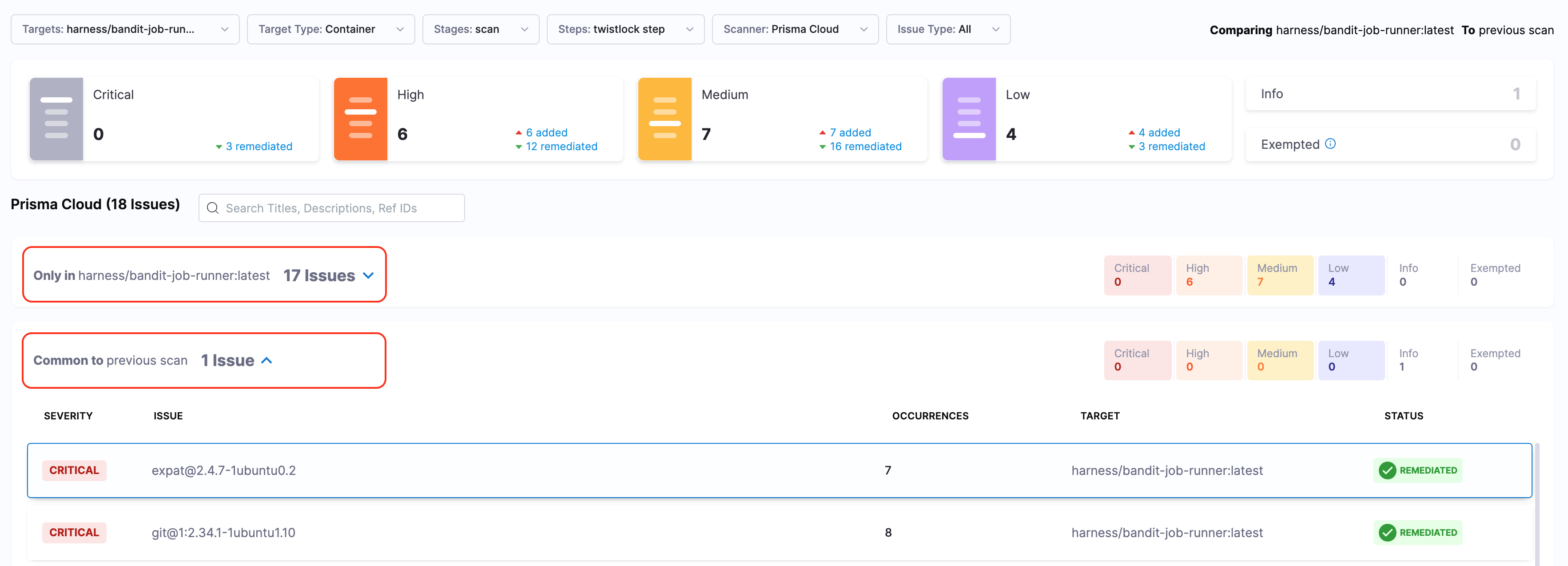 - Remediation: Steps from Harness AI and Scanner (see Fix security issues using Harness AI).