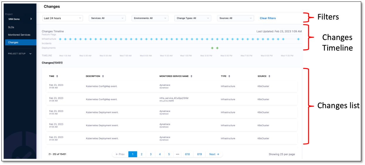 The Changes dashboard helps you understand when the change occurred, why it took place, and what impact it had on the health of the monitored service.