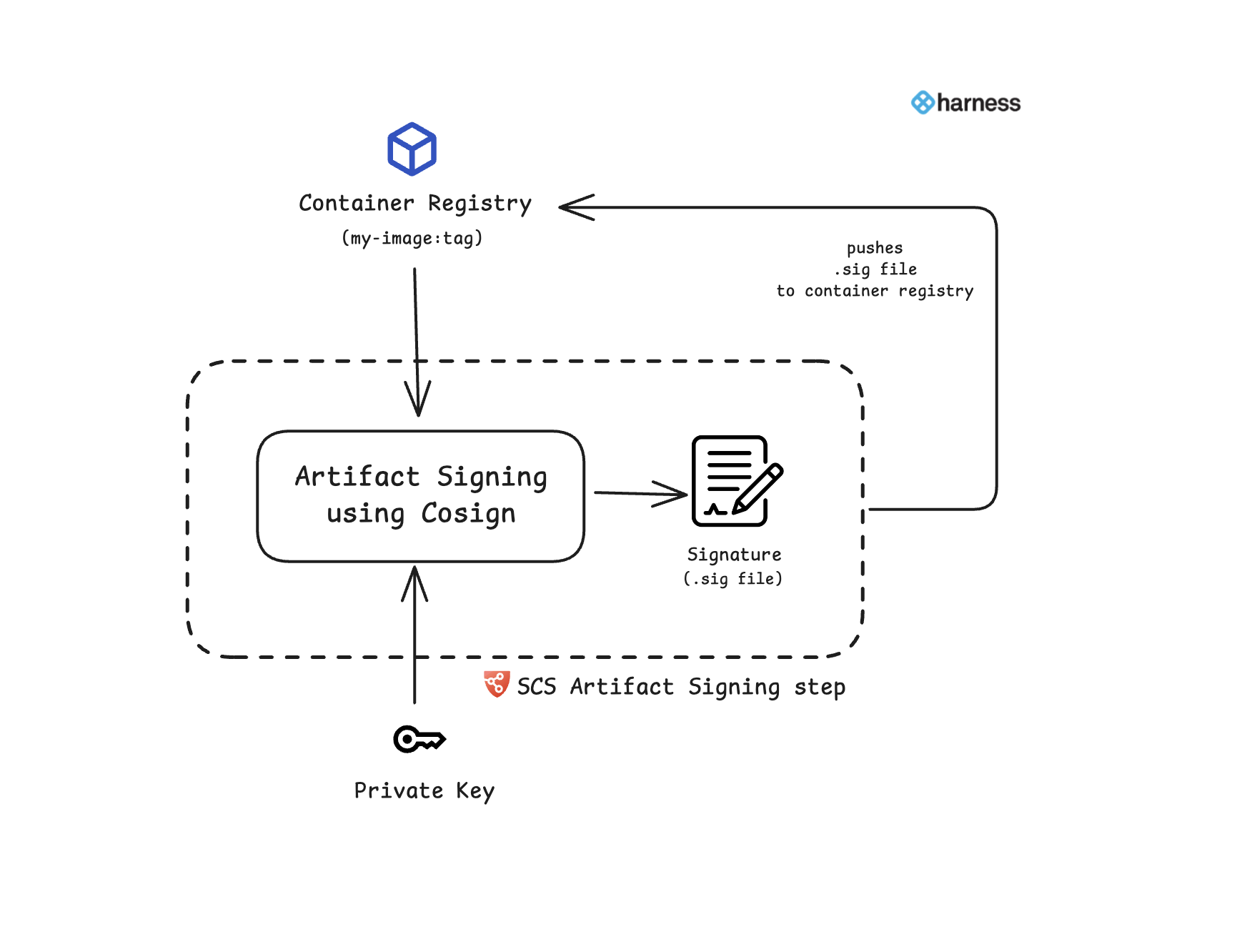 The Artifact Signing step allows you to sign your artifacts and optionally push the generated signature file .sig to the same artifact registry from which the artifact was retrieved.