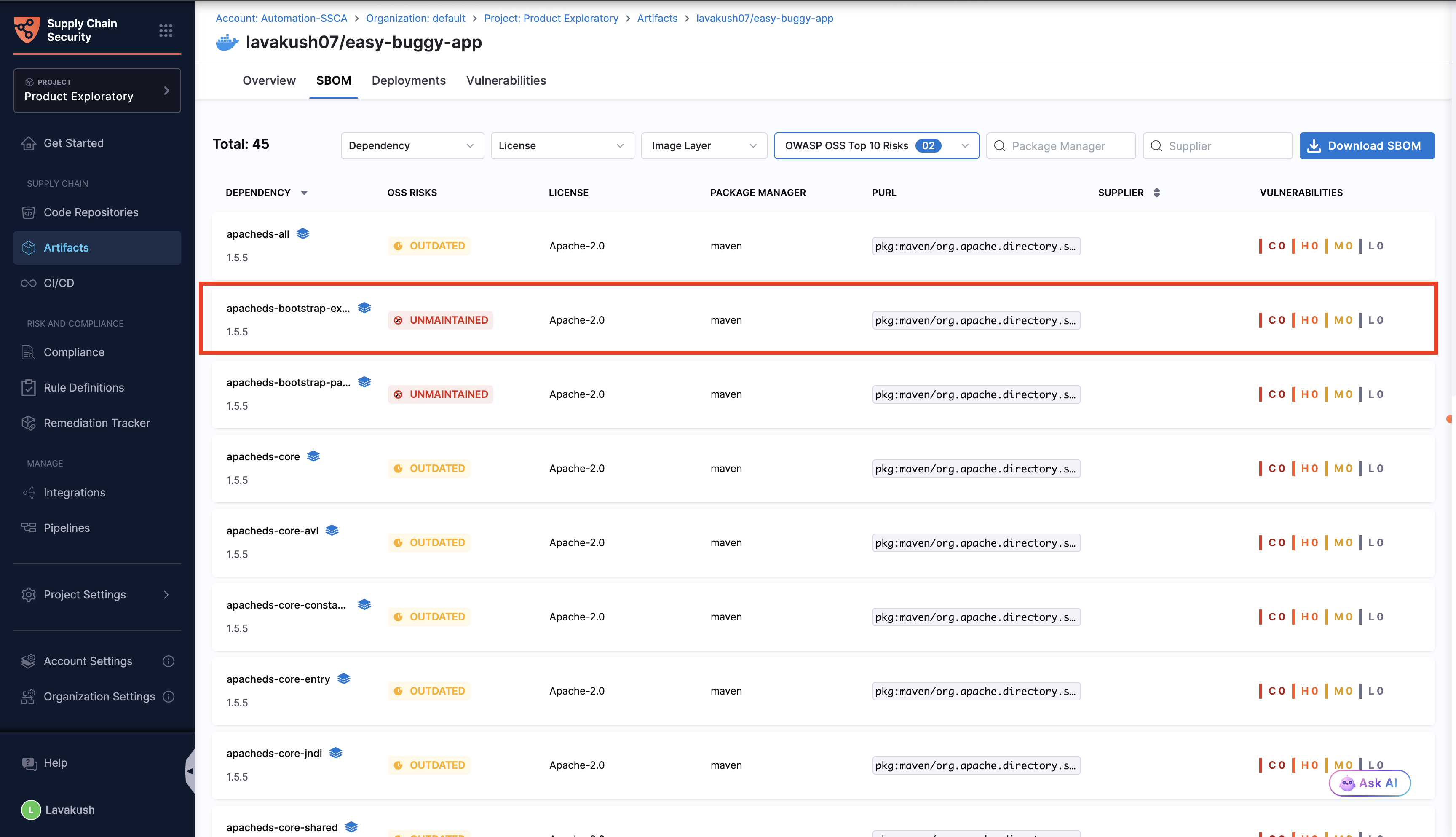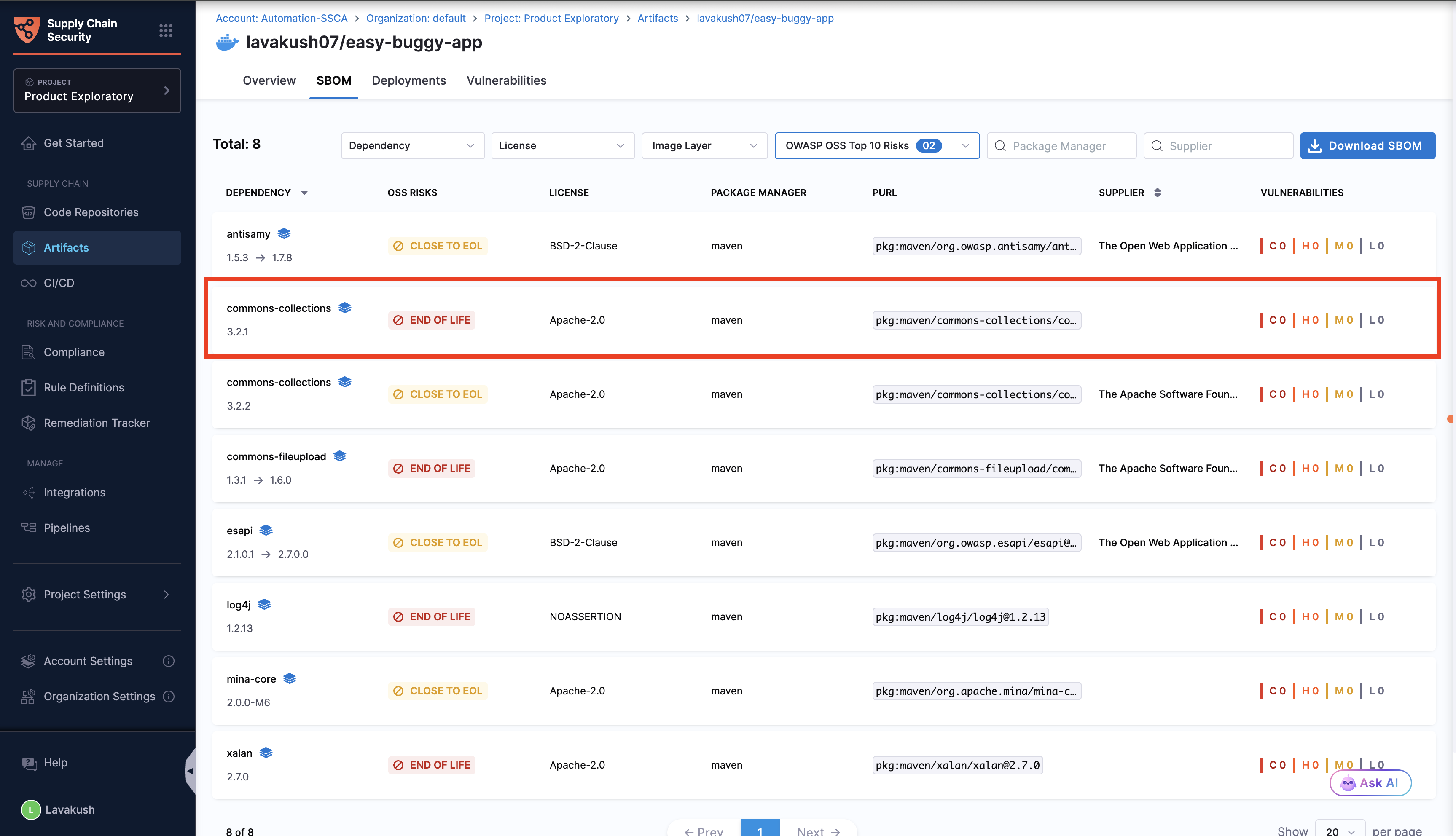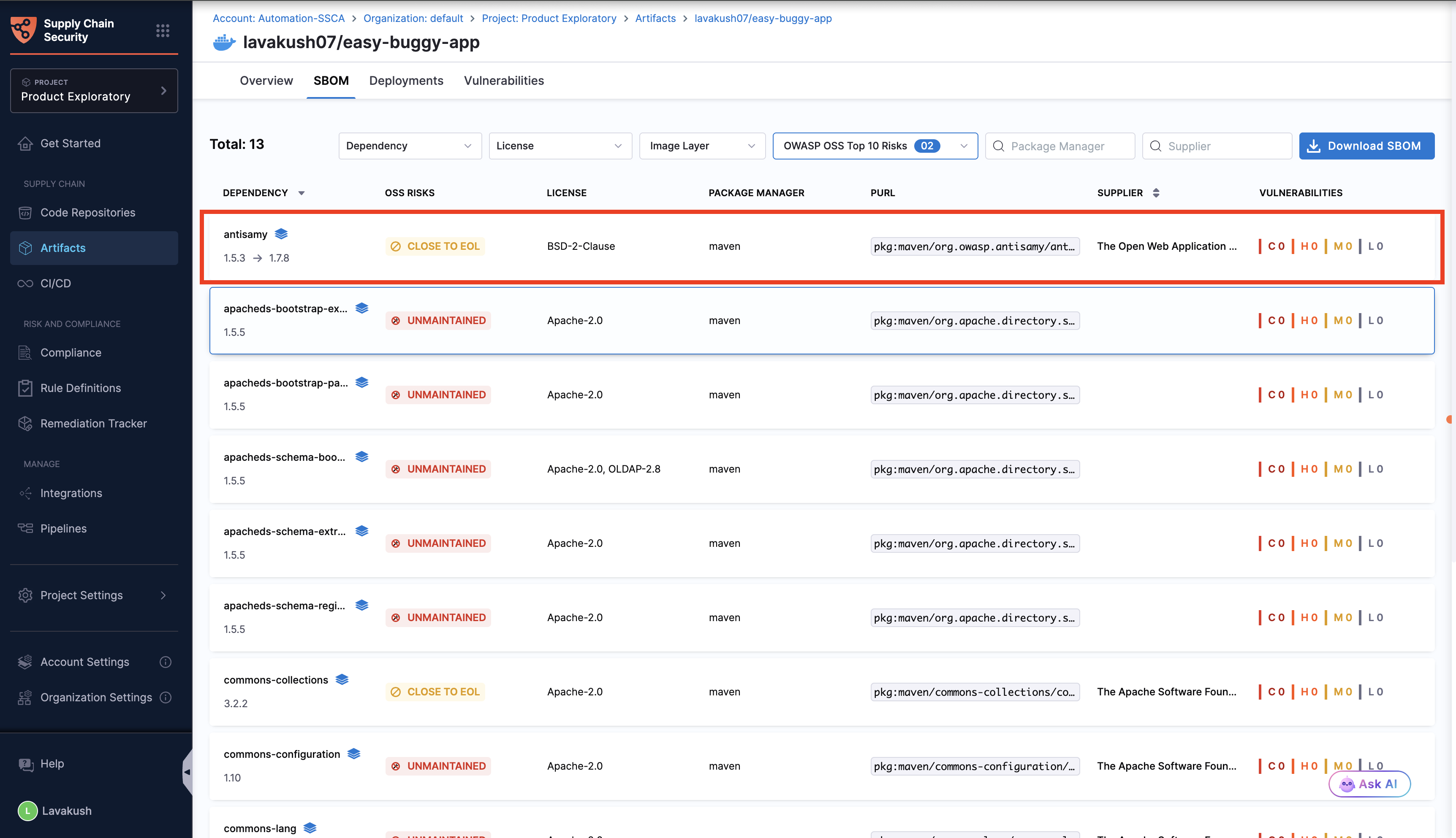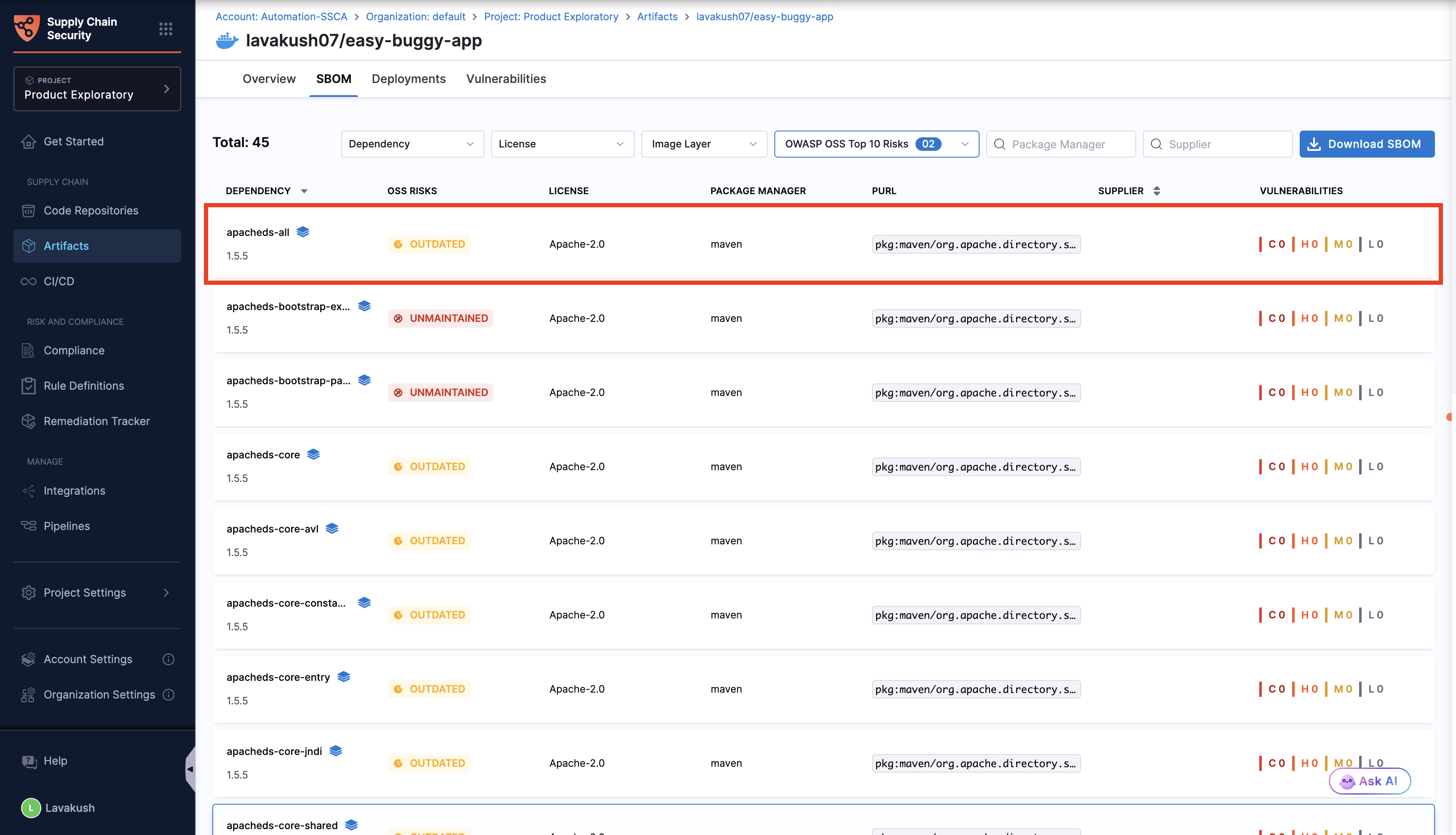 Open source software plays a critical role in the software landscape, with studies showing that over 90% of codebases contain open source components. While it accelerates development and innovation, it can also introduce security risks if not managed carefully. By assessing the components listed in your Software Bill of Materials (SBOM) against OWASP Top 10 risks helps to uncover risks such as outdated, unmaintained or end of life components, ensuring your OSS dependencies remain secure, reliable, and up to date. Running OSS risk checks plays a vital role in strengthening your software supply chain and maintaining trust in your applications.
