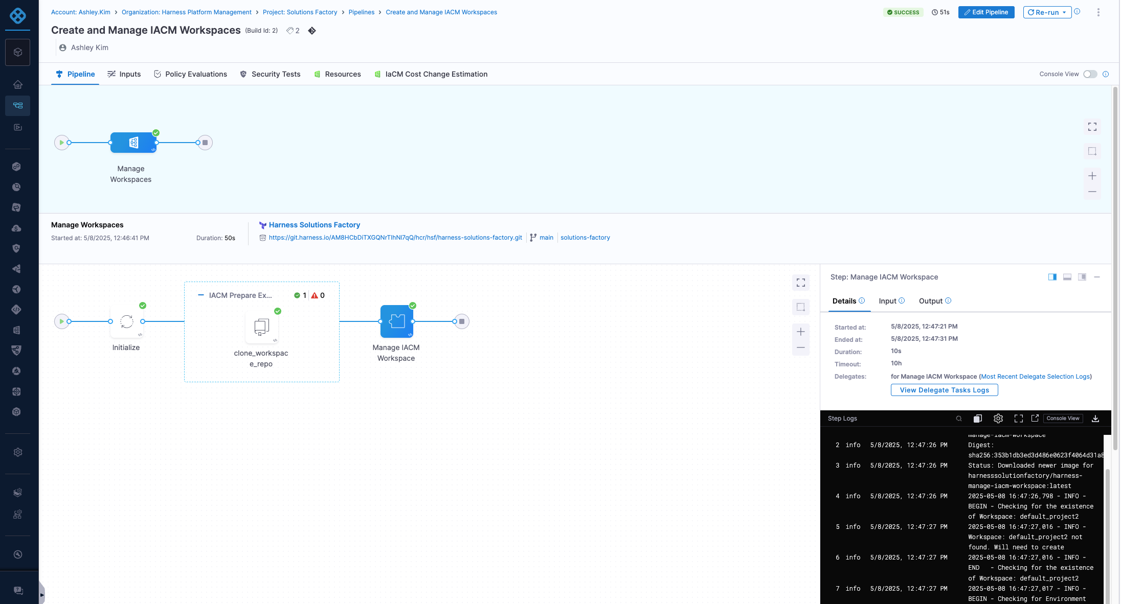 After this pipeline is done, it will kick off the Execute IACM Workspace pipeline.