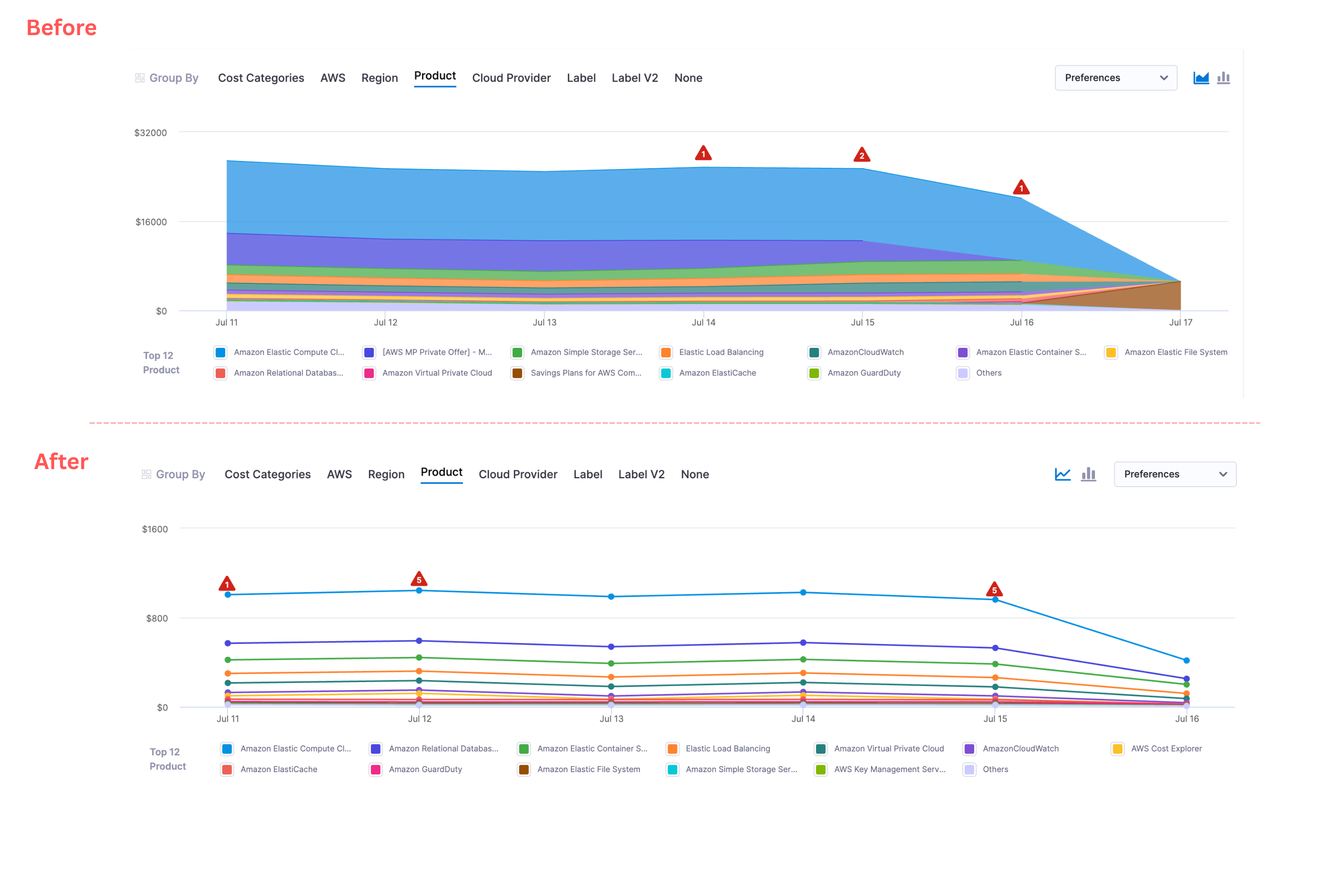 Chart Visualization Improvement: We recently switched the chart's Y-axis from logarithmic to linear based on feedback. However, this made it difficult for users to view both cluster and cloud costs together, as one would get overshadowed unless the other was deselected. We've reverted the change for now while we work on a better solution to visualize both.