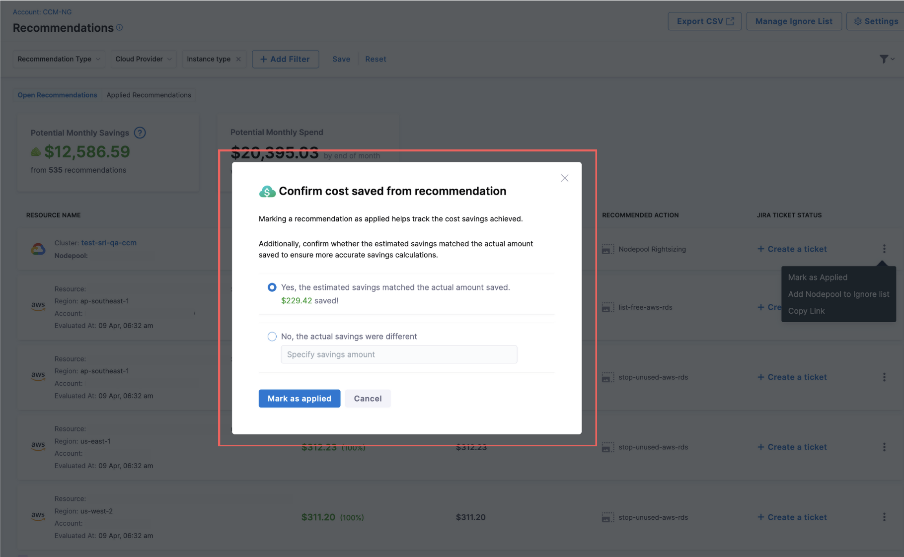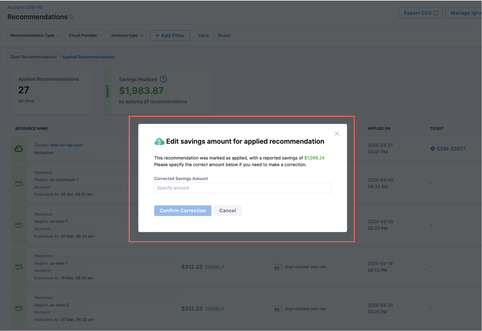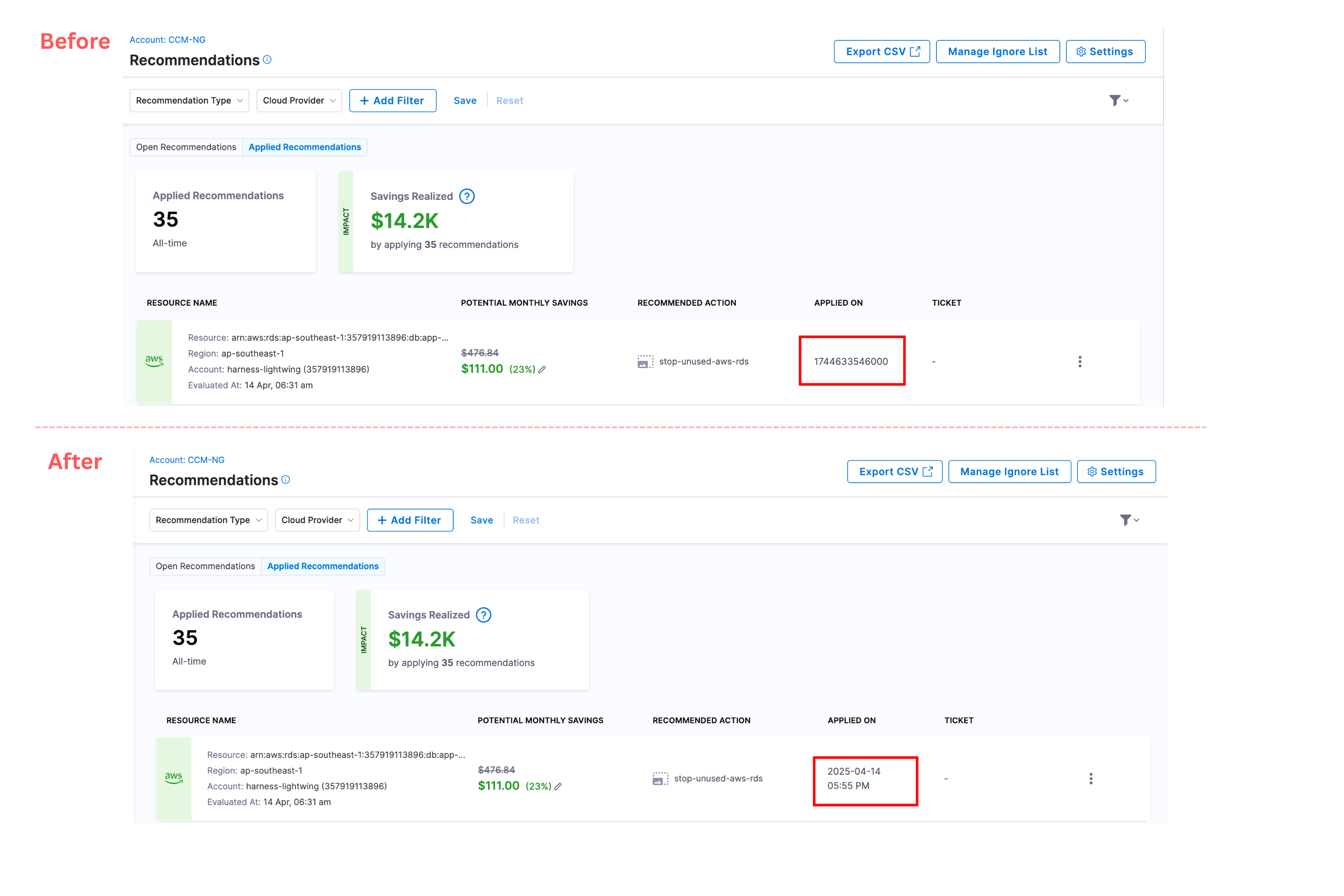 lastDayCostwas unavailable, recommendations displayed 'NaN' (Not a Number) values in the UI. We've implemented fallback logic that automatically retrieves thelastDayCost, ensuring consistent cost visibility across all recommendations. [CCM-23235]