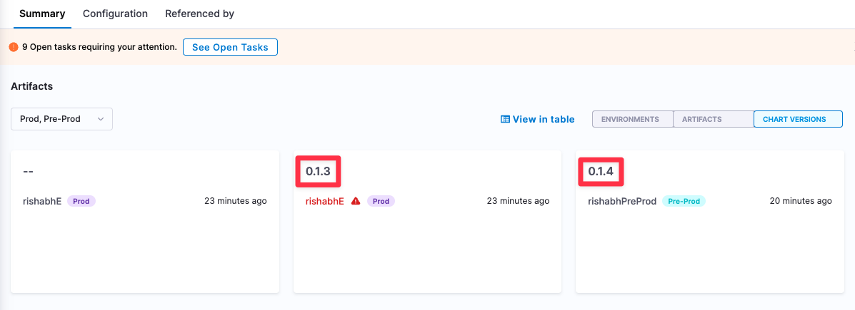 -for chart versions. Users can now see specific artifact and chart versions during deployment, improving tracking and visibility.