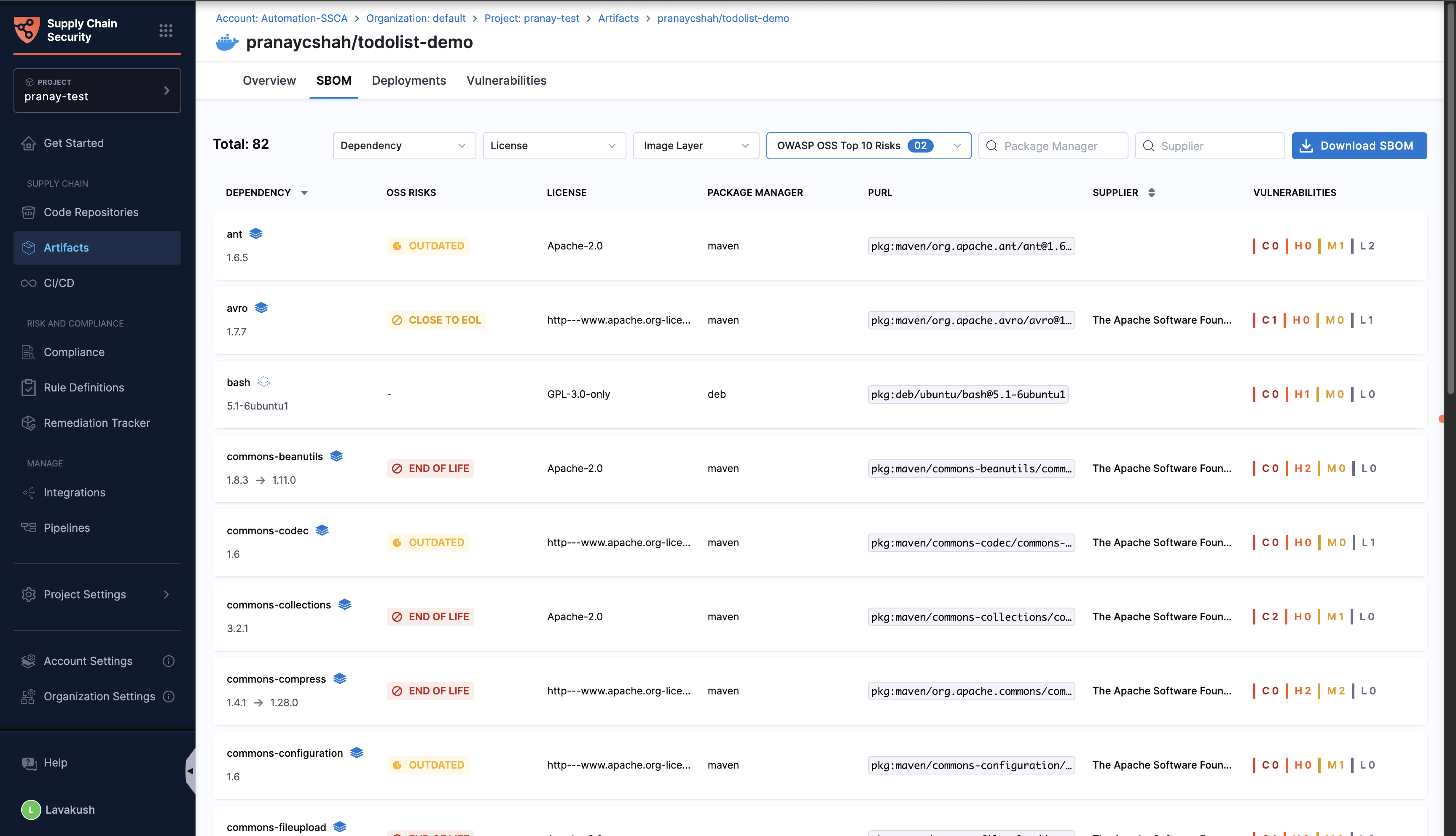 - Added Dashboards for License and Compliance Reports to easily access detailed information about the licenses and compliance status associated with your software components at one place.